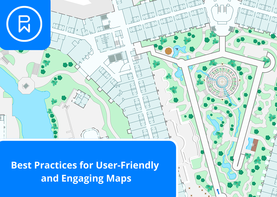 When designing the map, it’s best to consider what visual elements of the map layout would be most beneficial for the user to notice while they are finding their way around the facility. Key landmarks, notable walkways, and clearly marked exits and entrances can all be useful elements that make up the map. Other details like interior rooms, complex furniture arrangements, or patterns on the floor may provide more detail than is needed.