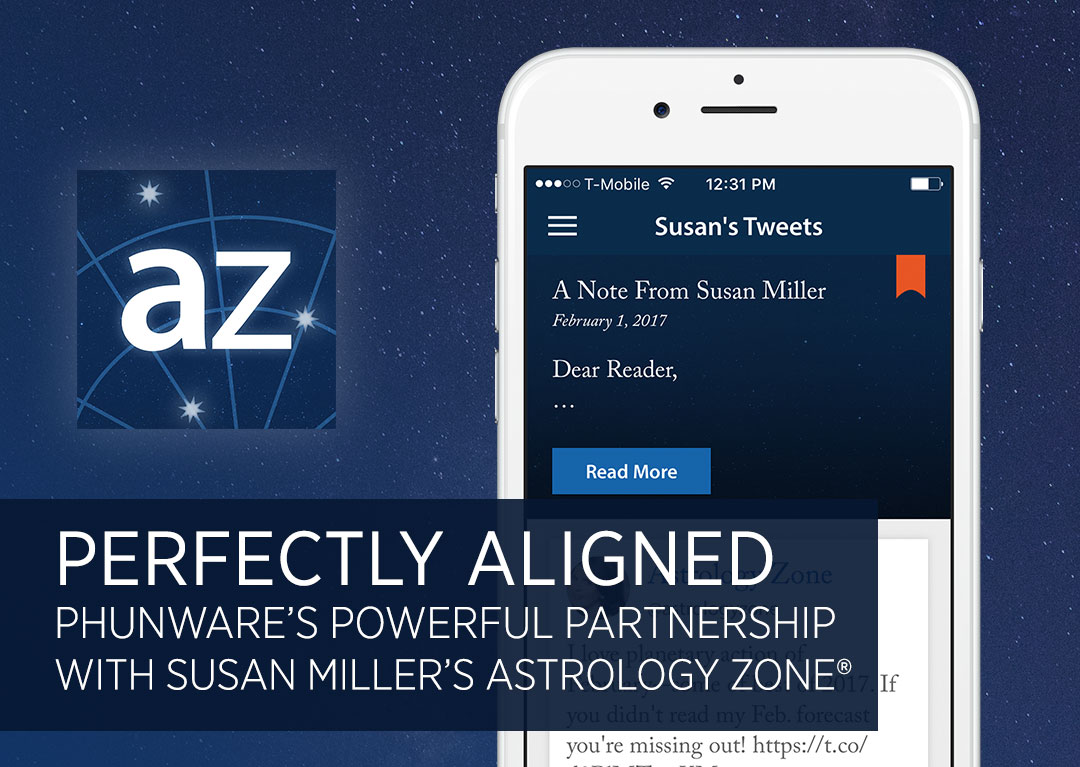 We’re proud of our partnership with renowned astrologer Susan Miller and the work we’ve accomplished together for her app, Susan Miller’s Astrology Zone® (available for iOS and Android). She identified a need for a modern, mobile-friendly solution that would allow her most avid readers to engage with her acclaimed astrological forecasts whenever and wherever they wanted—and then identified Phunware as the right partner to help realize her vision of an elegant, unified solution across mobile and web.